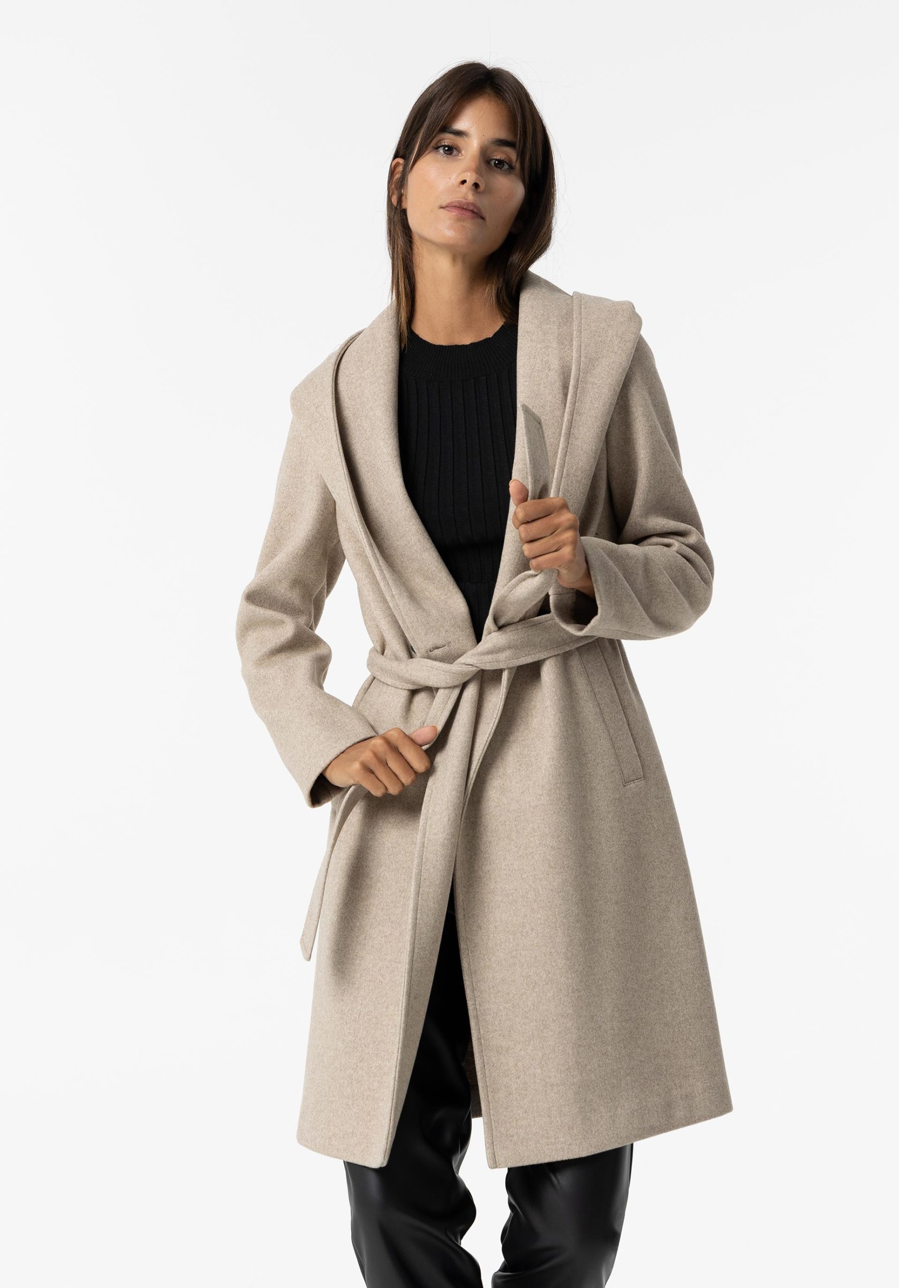 (50% off)Μπεζ παλτό με κουκούλα Colusion